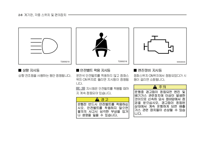 안전벨트 착용 지시등 그림 및 설명문, 경고문,