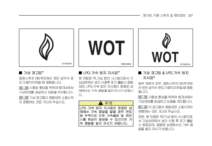 LPG 가속 방지 지시등(WOT) 그림 및 설명, 주의문